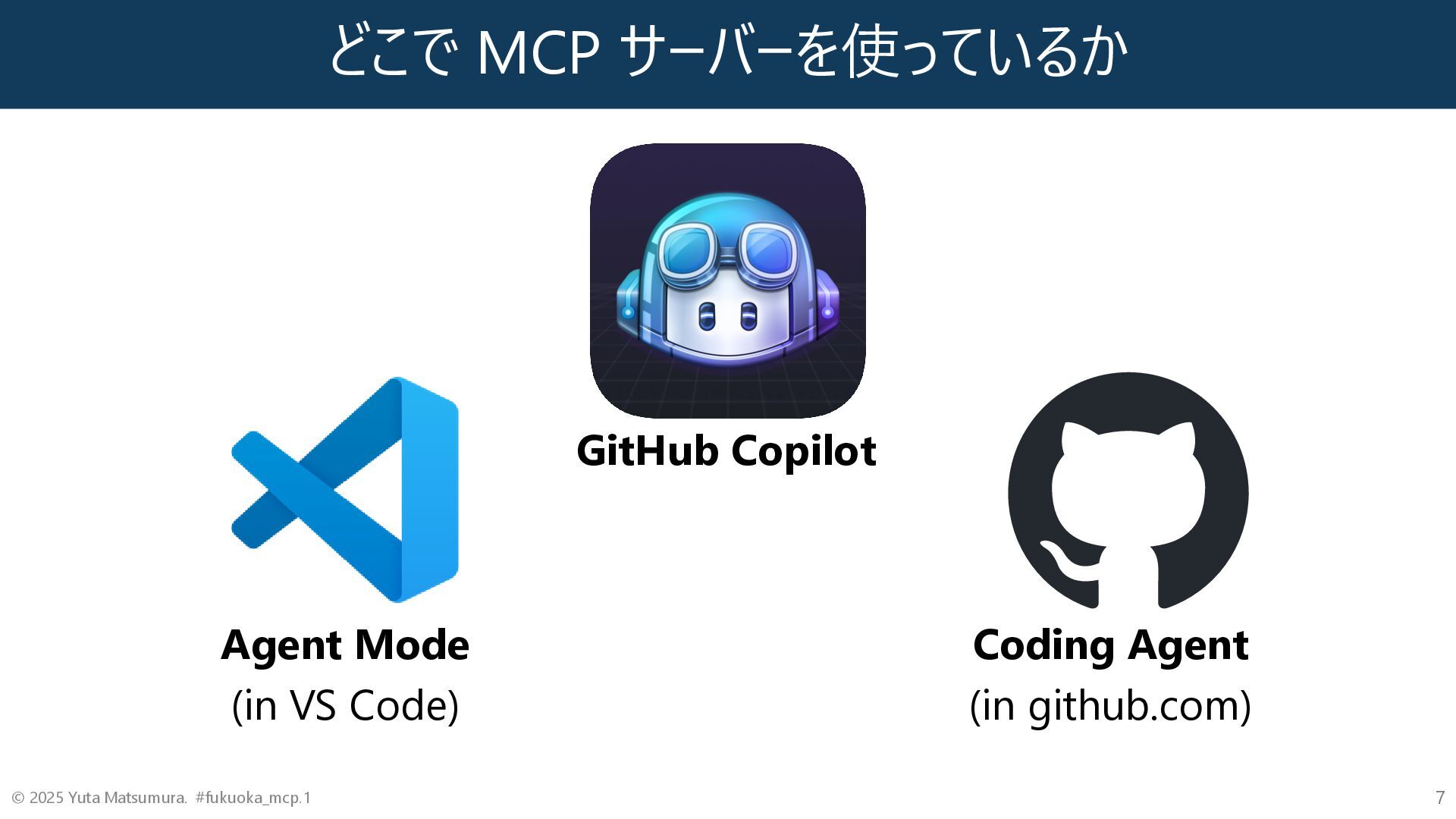 (in github.com) © 2025 Yuta Matsumura. #fukuoka_mcp.1 7 GitHub Copilot