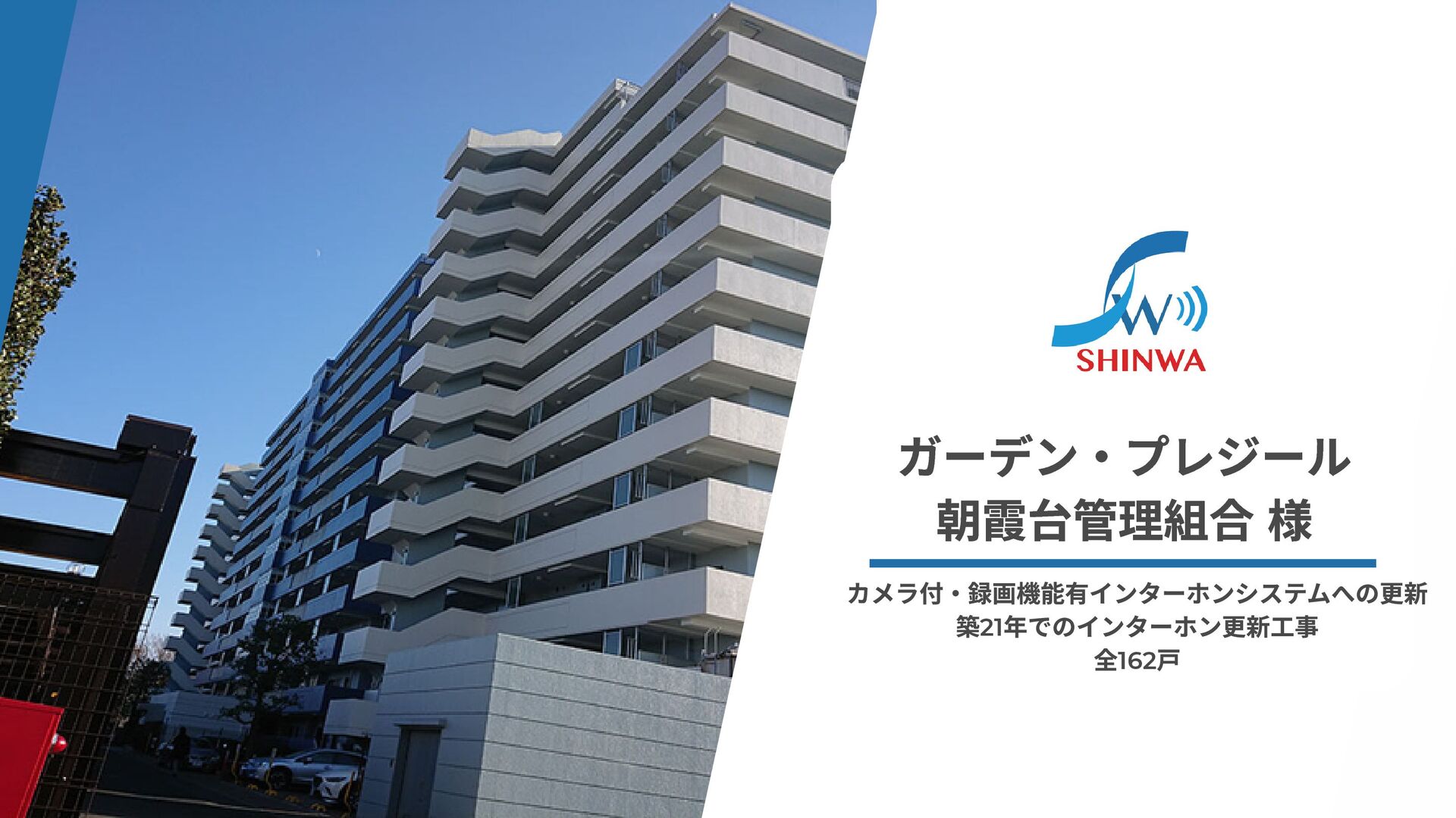 ガーデン・プレジール 朝霞台管理組合 様 ガーデン・プレジール 朝霞台管理組合 様 カメラ付・録画機能有インターホンシステムへの更新 築21 年でのインターホン更新工事 全162
