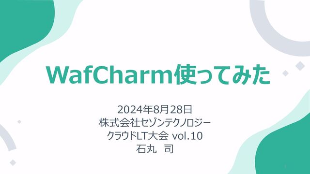 WafCharm使ってみた 2024年8月28日 株式会社セゾンテクノロジー クラウドLT大会 vol.10 石丸 司 1