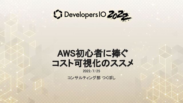AWS初心者に捧ぐ コスト可視化のススメ 2022/7/25 コンサルティング部 つくぼし