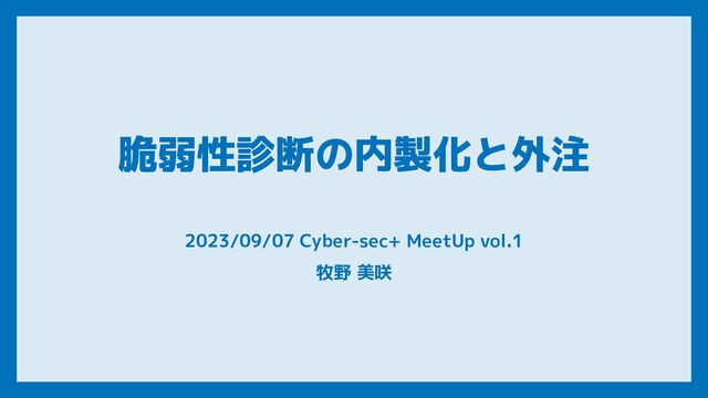 脆弱性診断の内製化と外注 2023/09/07 Cyber-sec+ MeetUp vol.1 牧野 美咲