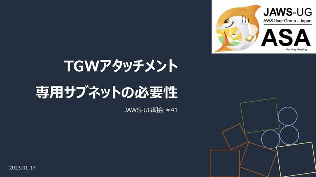 TGWアタッチメント 専⽤サブネットの必要性 JAWS-UG朝会 #41 2023.01.17