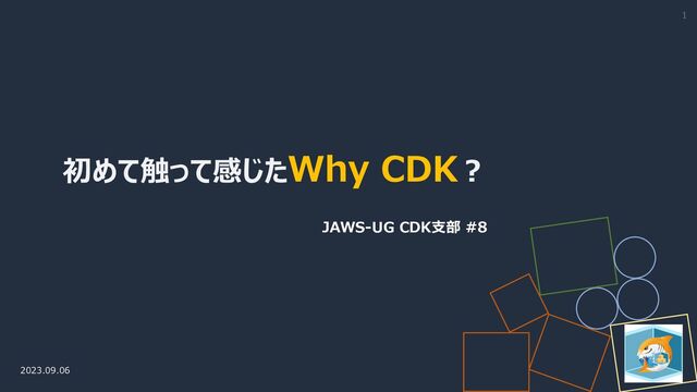 初めて触って感じたWhy CDK︖ JAWS-UG CDK⽀部 #8 2023.09.06 1