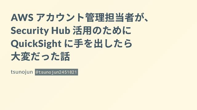 AWS アカウント管理担当者が、 Security Hub 活用のために QuickSight に手を出したら 大変だった話 tsunojun @tsunojun2451821