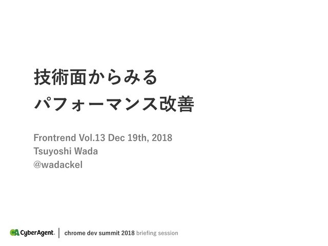 Chrome Dev Summit 2018 の内容を共有。 発表の中では少し端折ったところもありましたので、こちらで参照いただけますと幸いです。このスライドを見た上で、YouTube に上がっている動画を見ることでより深い理解につながれば幸いです。