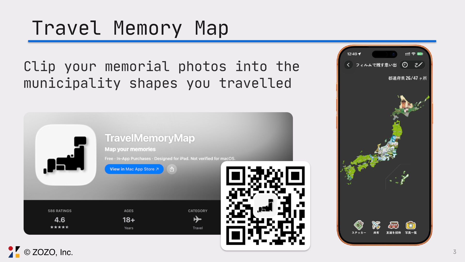 旅行思い出マップという訪れた場所の写真を地図の地形に合わせて切り取り、地図上にパズルのように配置して視覚的に旅の思い出を記録・共有できるアプリを個人で開発しております。