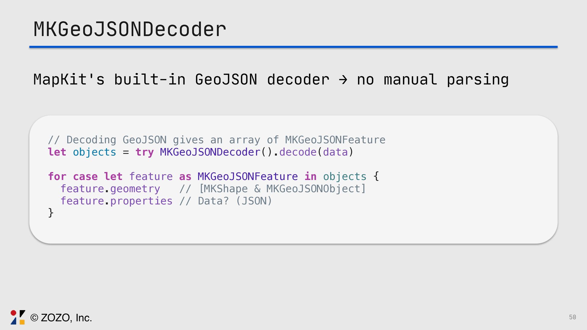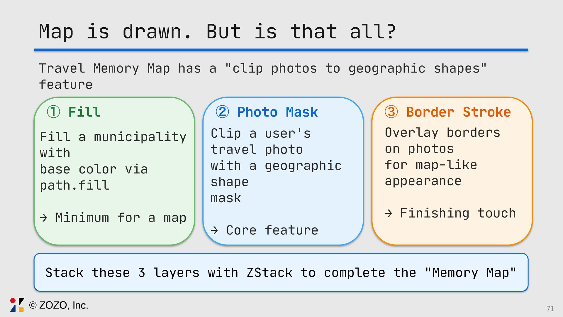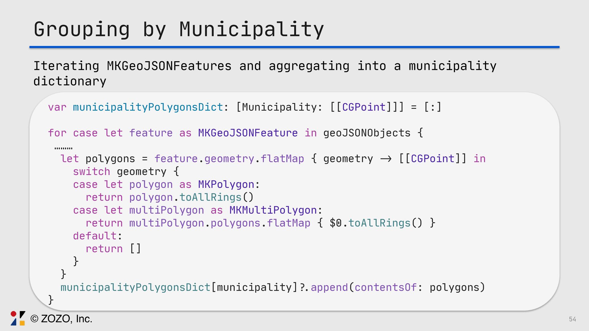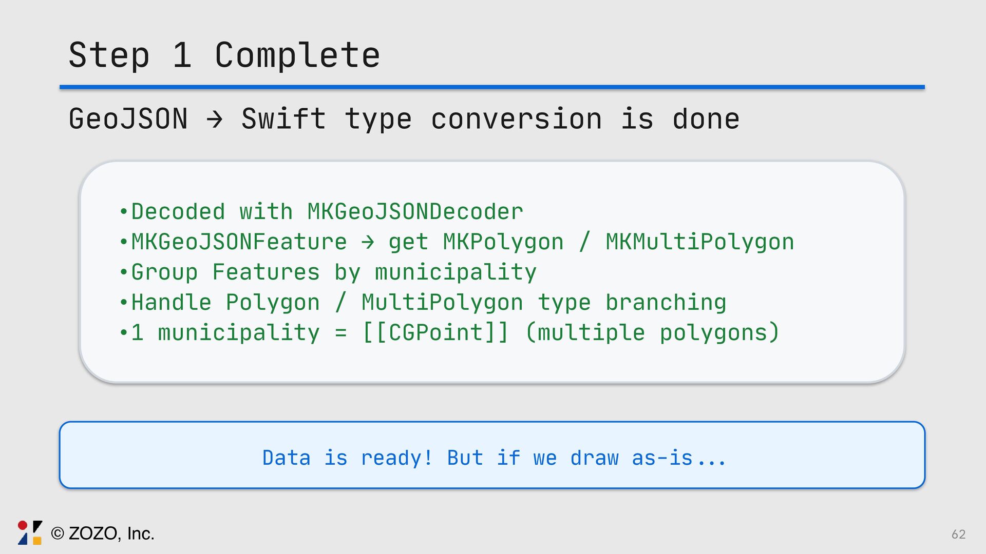 このトークでは、GeoJSONをSwiftUIで描画する方法、また実際に起きる図法由来の違和感をどう捉え、どの図法・変換・描画方法を選ぶことで「自然に見える地図」にしたのか、その設計と実装を実例とともに解説します。