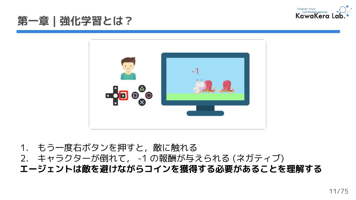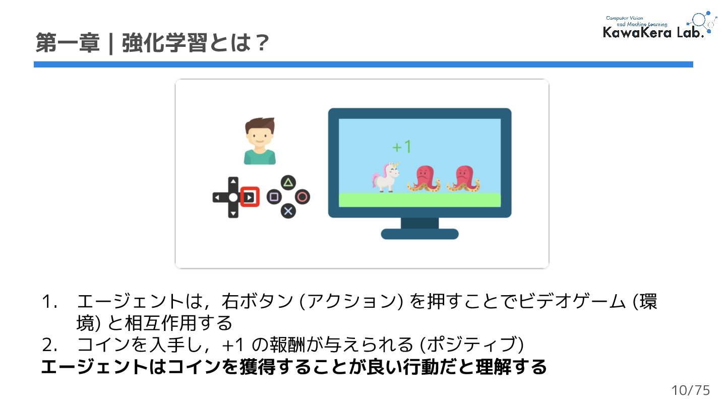 (ポジティブ) エージェントはコインを獲得することが良い行動だと理解する 第一章 | 強化学習とは? 10/75