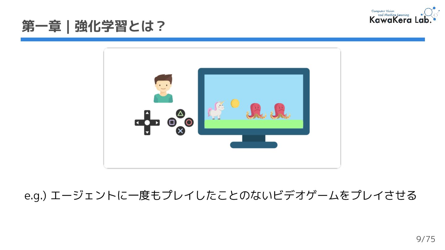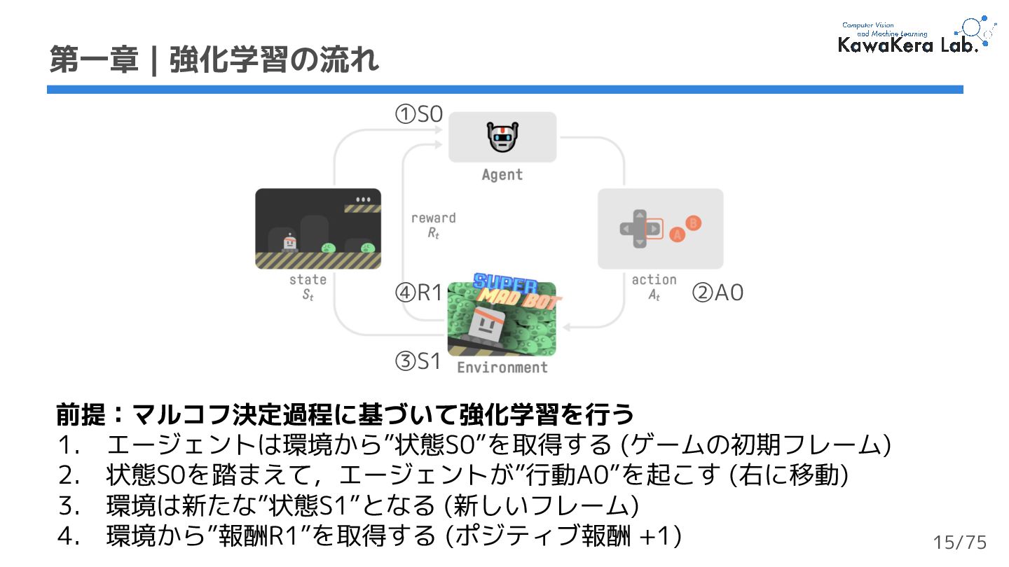1. 1. エージェントは,右ボタン (アクション) を押すことでビデオゲーム (環 境) と相互作用する 2. コインを入手し,+1 の報酬が与えられる