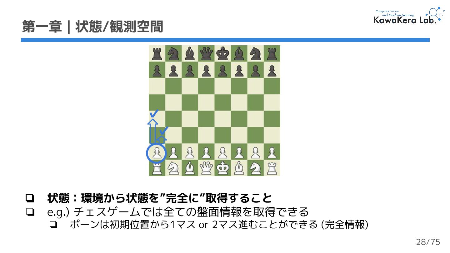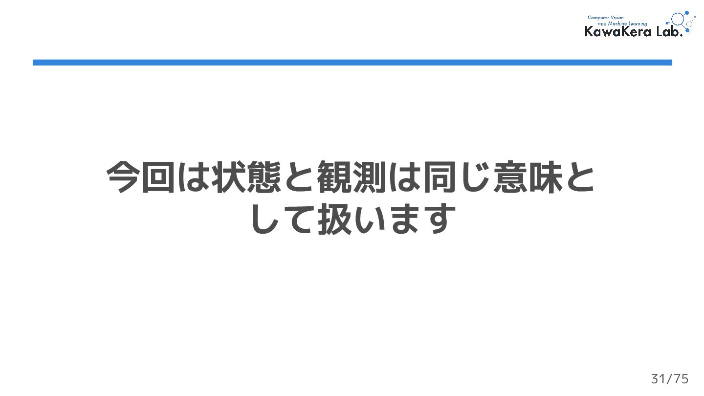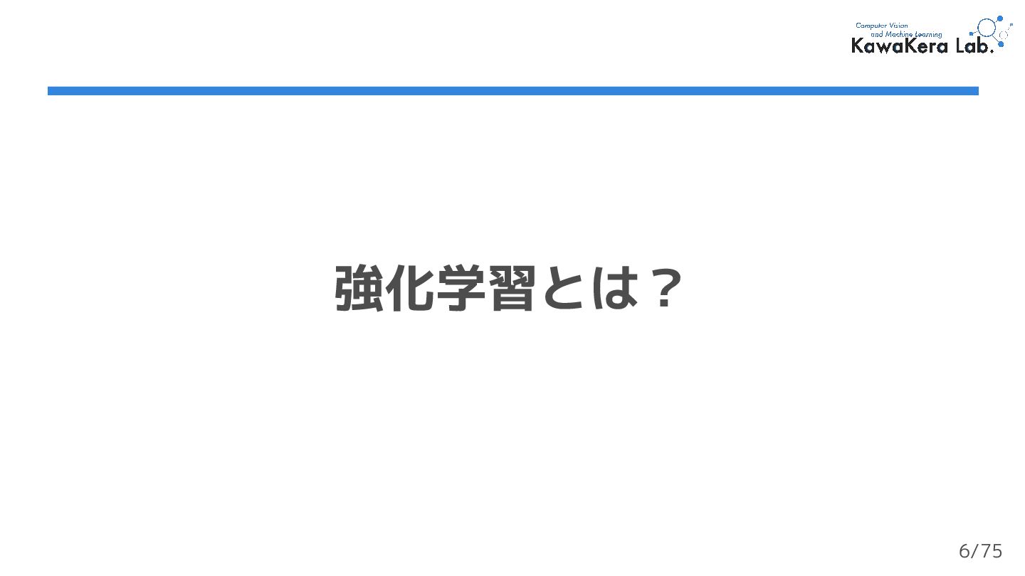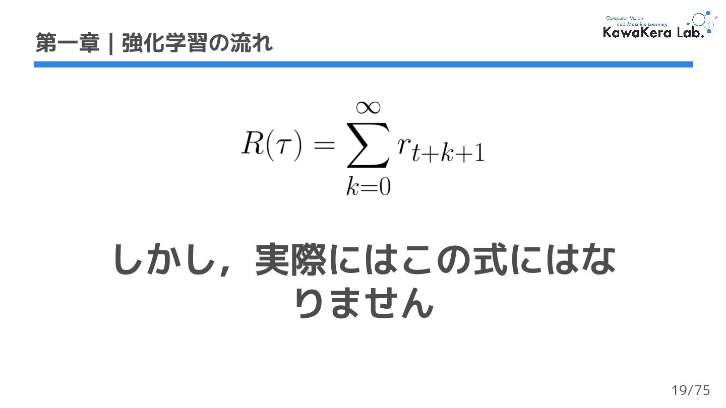 (最終状態) がない ❏ エージェントは停止を決定するまで行動を続ける ❏ なので,終了判定は任意に設定する必要がある ❏ e.g.) ロボットが転倒したら終了する 40/75