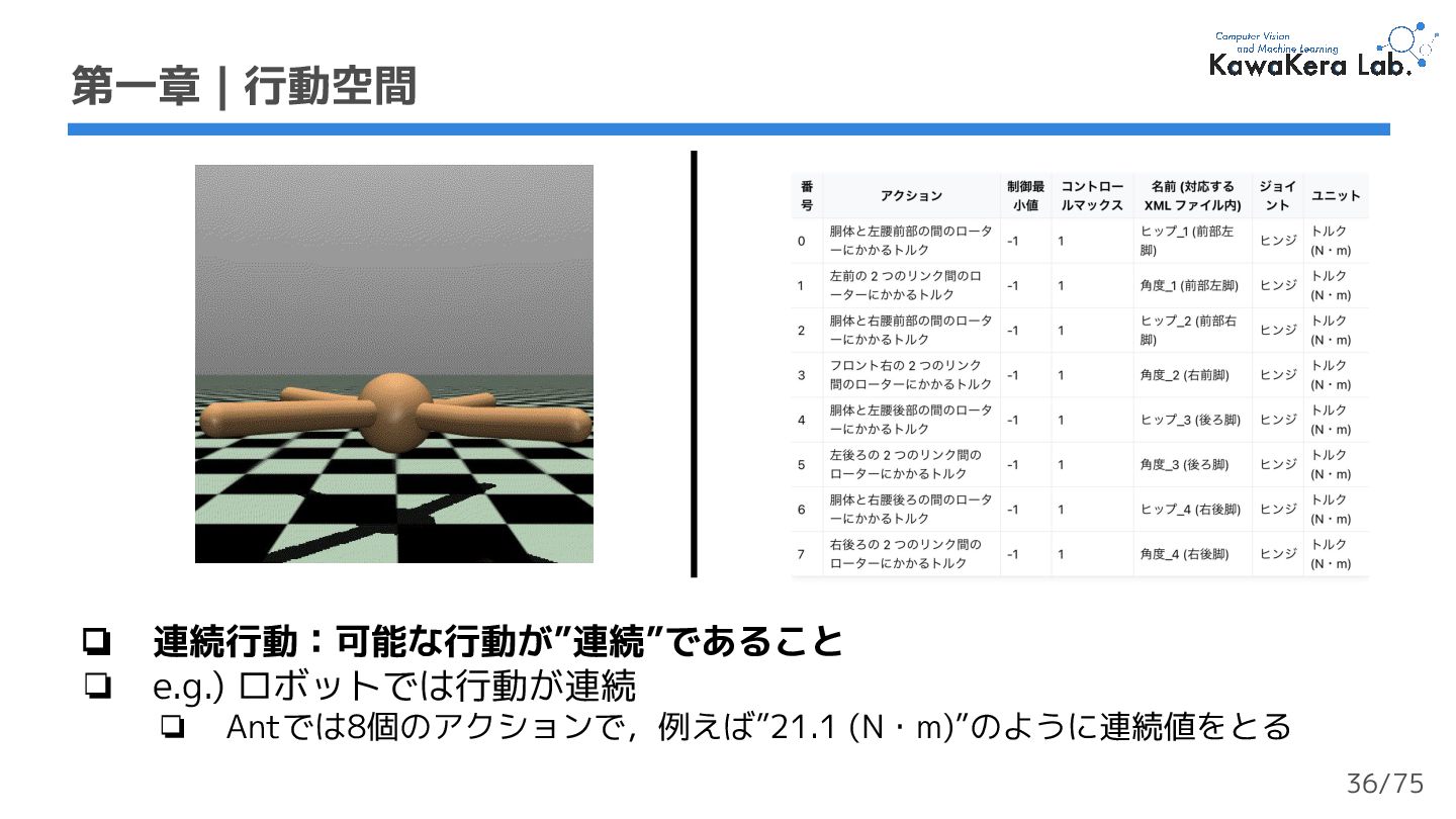 4. 第一章 | タスクの種類 ❏ 連続タスク (Mujoco : Ant) ❏ 終了判定