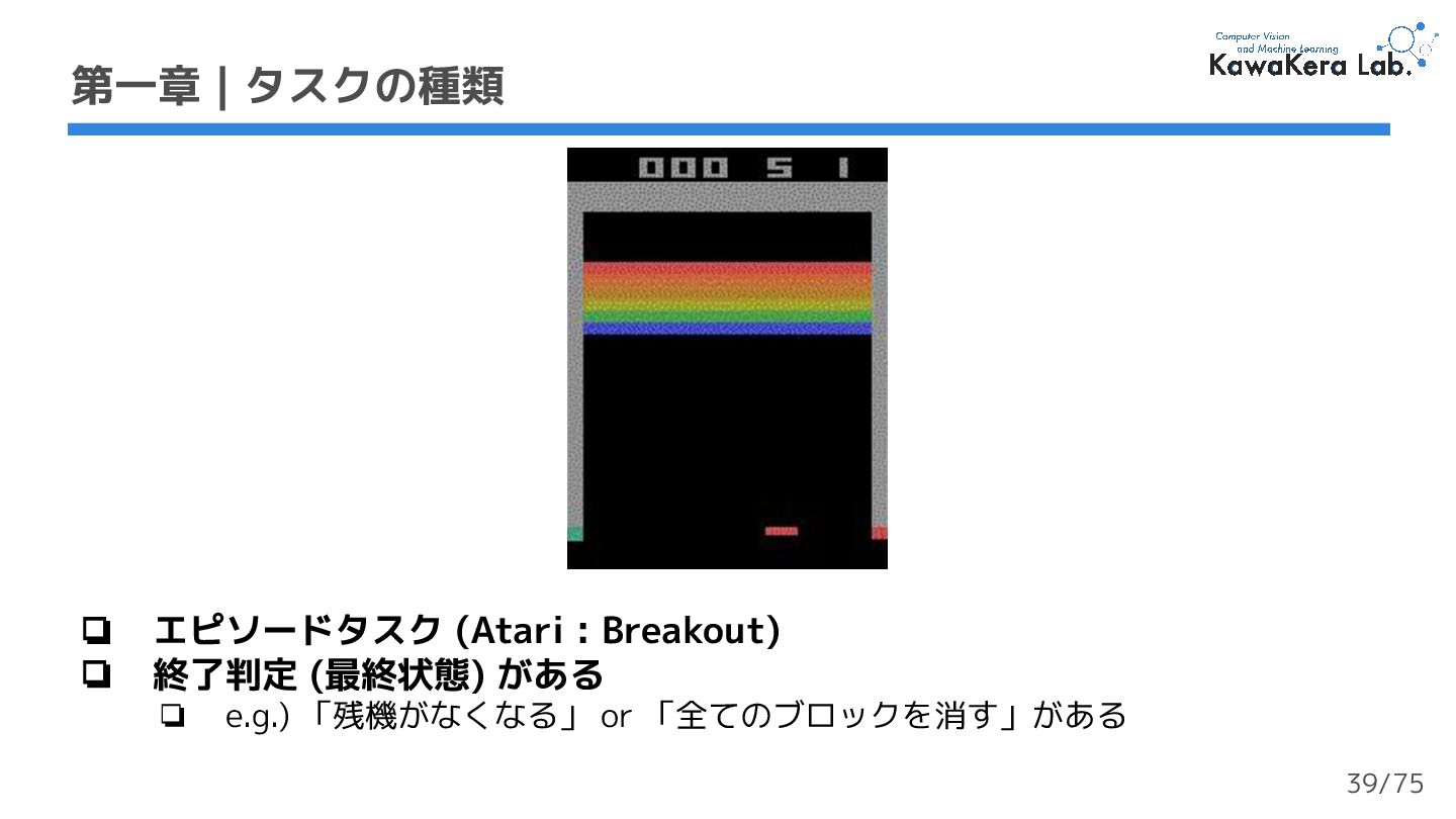 3. 第一章 | タスクの種類 ❏ エピソードタスク (Atari : Breakout) ❏ 終了判定