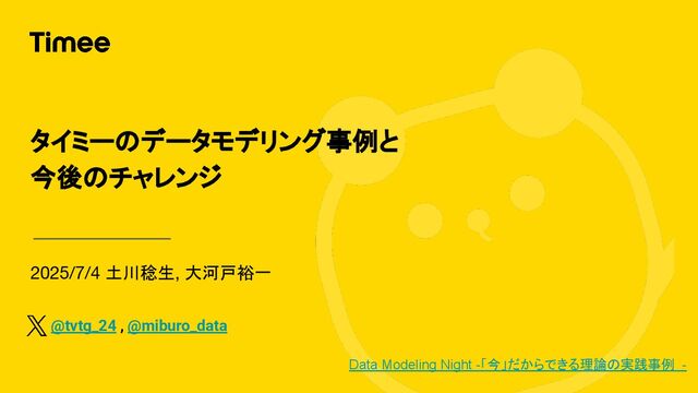 2025/7/4 土川稔生, 大河戸裕一 タイミーのデータモデリング事例と 今後のチャレンジ @tvtg_24 , @miburo_data Data Modeling