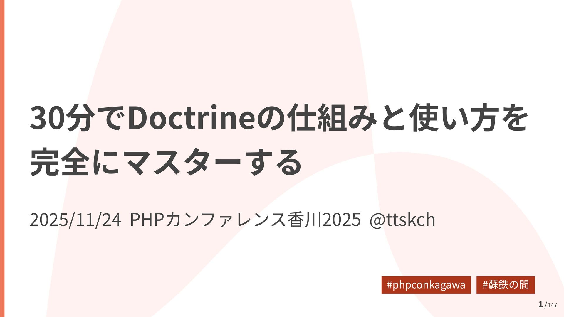 30分でDoctrineの仕組みと使い方を完全にマスターする / phpconkagawa 2025 Doctrine