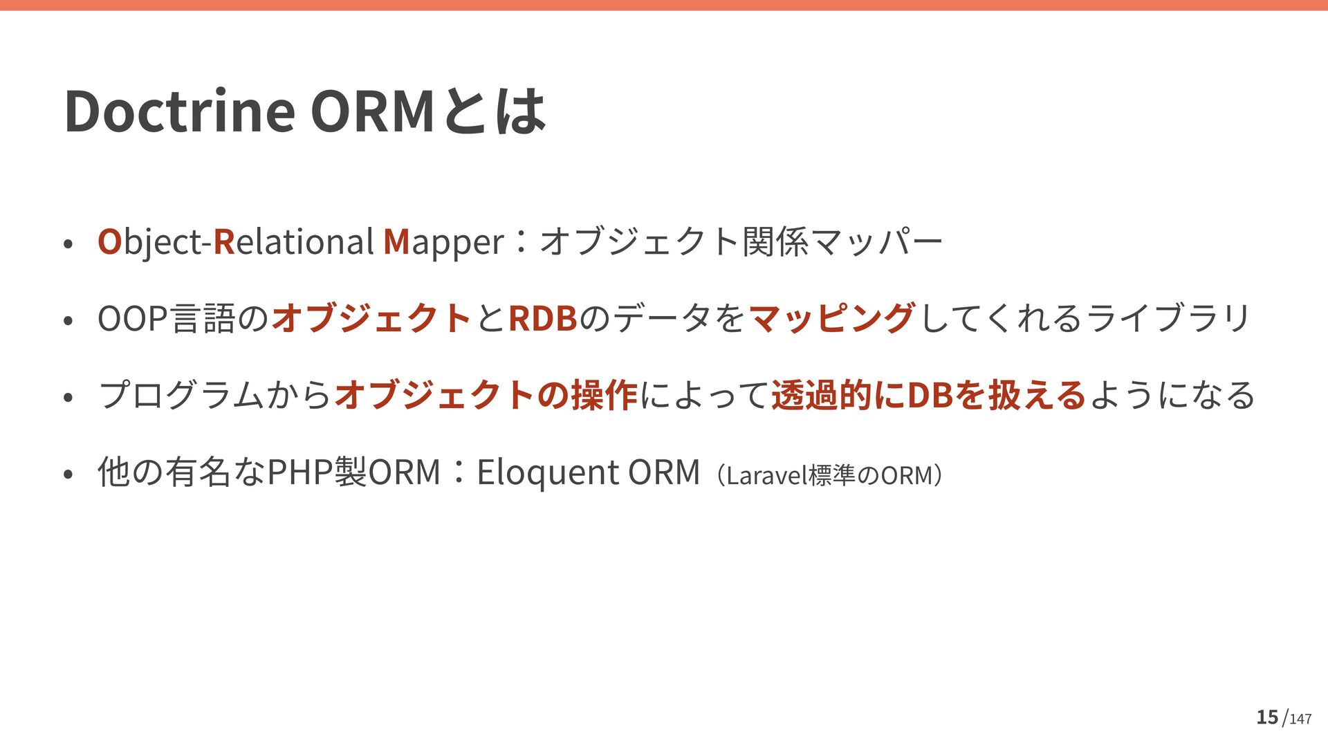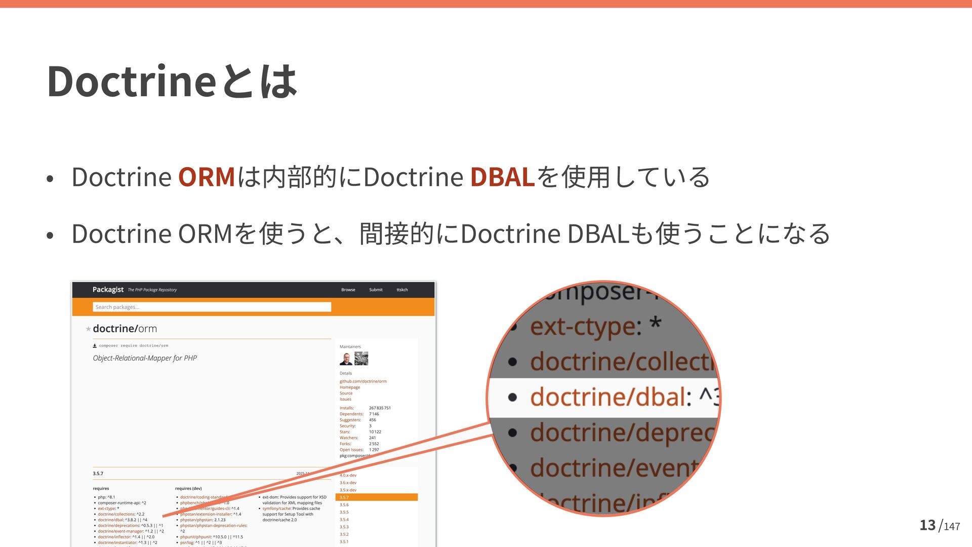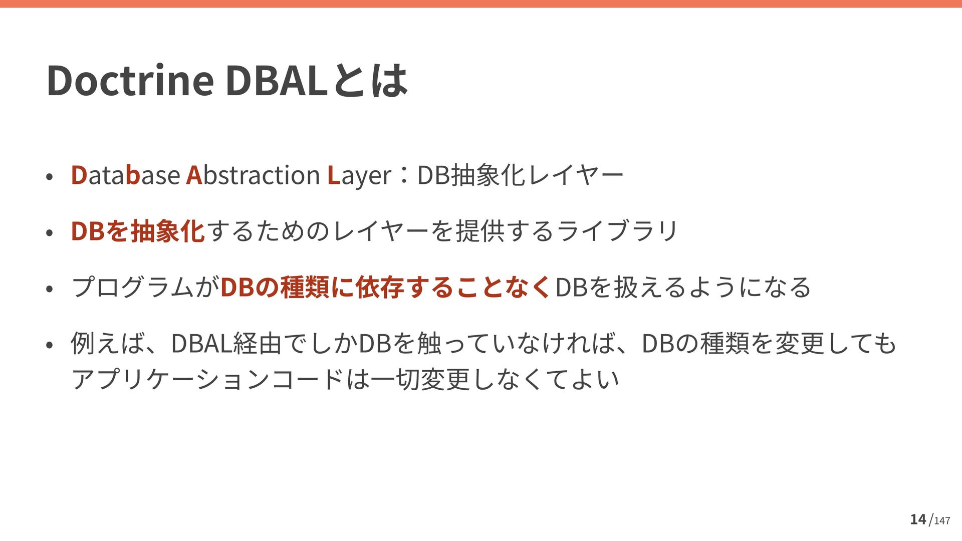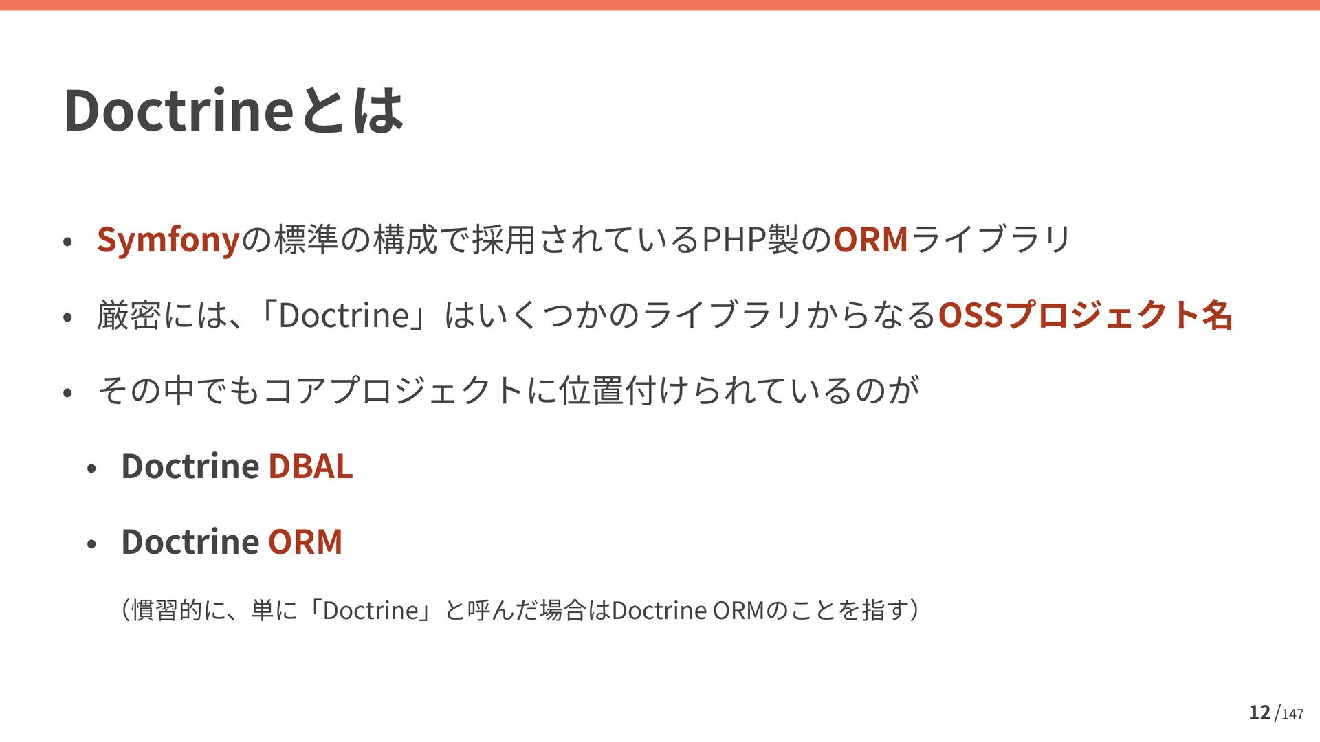 2. / 147 Symfony 用 PHP ORM Doctrine OSS Doctrine DBAL