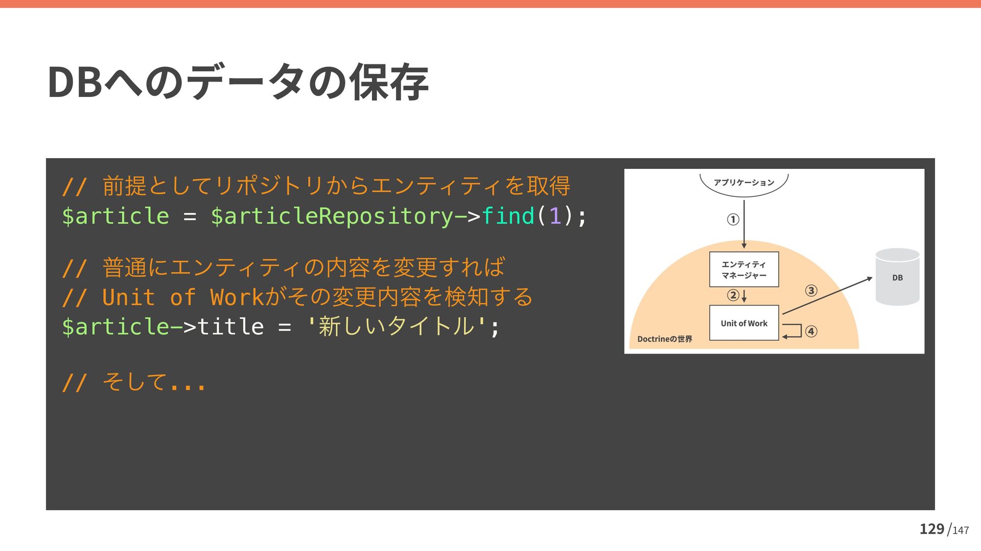 Unit of Work͕ͦͷมߋ಺༰Λݕ஌͢Δ $article->title = '৽͍͠λΠτϧ'; // ͦͯ͠...  129 DB