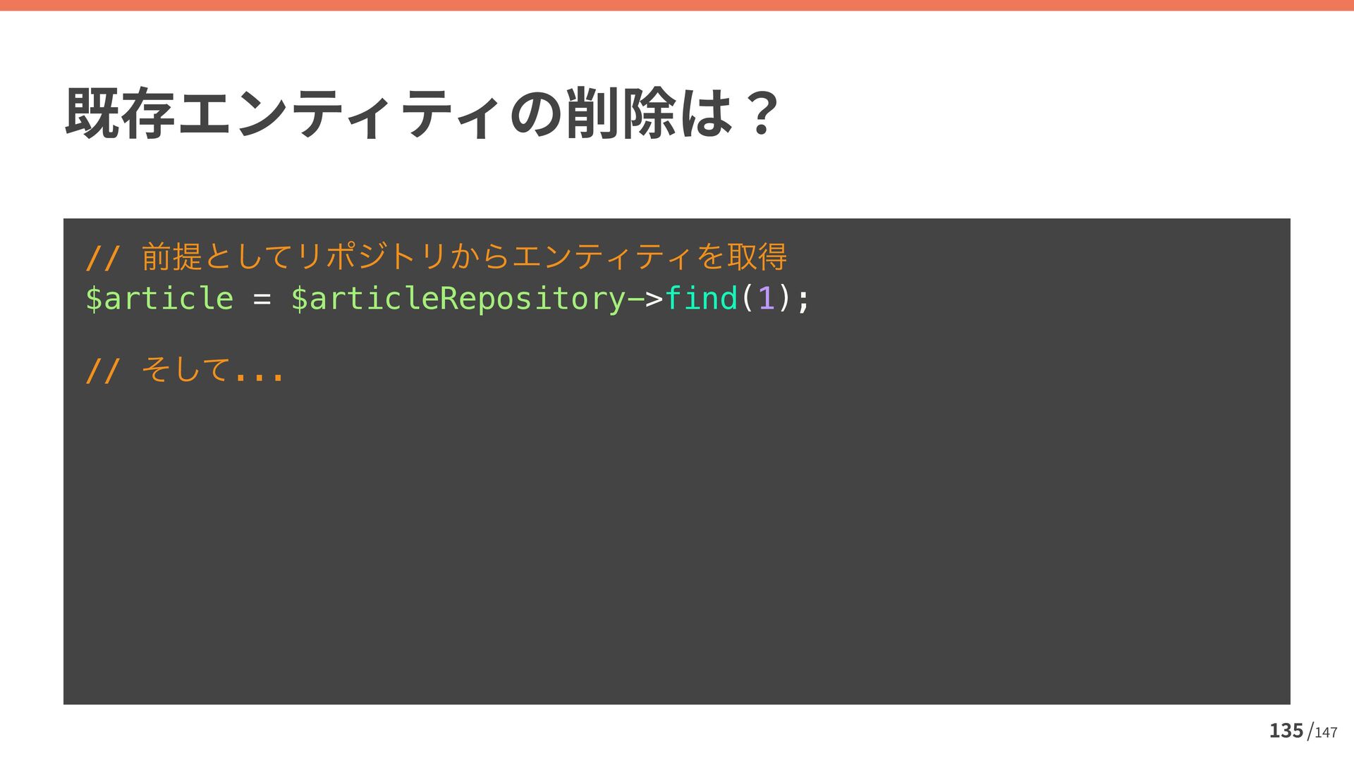 47. / 147 // લఏͱͯ͠ϦϙδτϦ͔ΒΤϯςΟςΟΛऔಘ $article = $articleRepository->find(1); // ී௨ʹΤϯςΟςΟͷ಺༰Λมߋ͢Ε͹ //