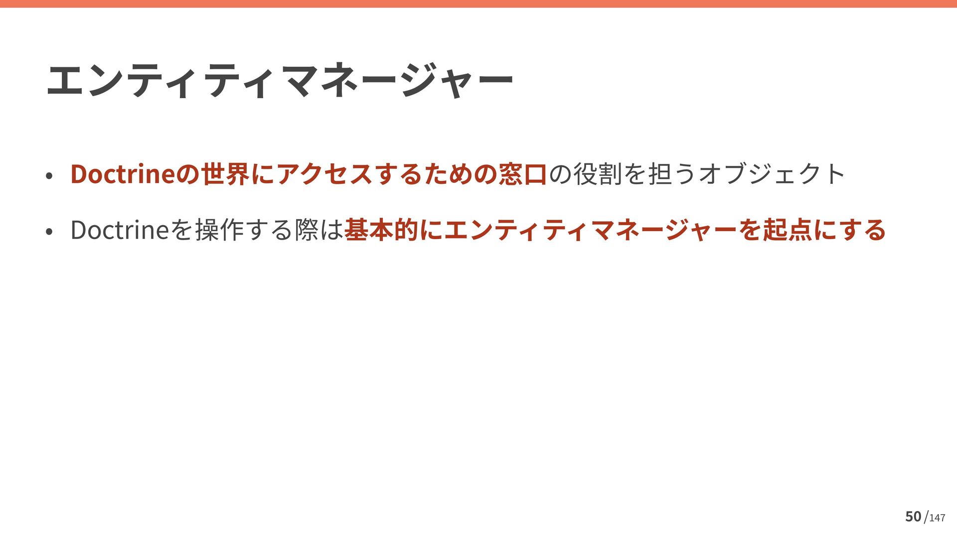 49. / 147 // લఏͱͯ͠ϦϙδτϦ͔ΒΤϯςΟςΟΛऔಘ $article = $articleRepository->find(1); // ී௨ʹΤϯςΟςΟͷ಺༰Λมߋ͢Ε͹ //
