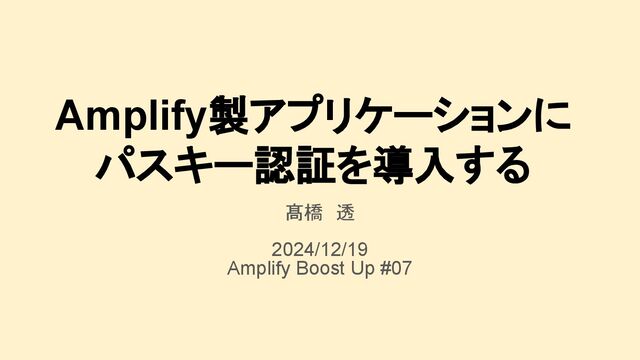 Amplify製アプリケーションに パスキー認証を導入する 髙橋 透 2024/12/19 Amplify Boost Up #07