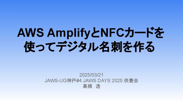 AWS AmplifyとNFCカードを 使ってデジタル名刺を作る 2025/03/21 JAWS-UG神戸#4 JAWS DAYS 2025 供養会 髙橋 透