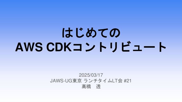 はじめての AWS CDKコントリビュート 2025/03/17 JAWS-UG東京 ランチタイムLT会 #21 髙橋 透