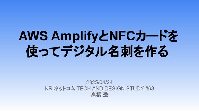AWS AmplifyとNFCカードを 使ってデジタル名刺を作る 2025/04/24 NRIネットコム TECH AND DESIGN STUDY #63
