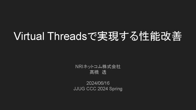 Virtual Threadsで実現する性能改善 NRIネットコム株式会社 髙橋 透 2024/06/16 JJUG CCC 2024 Spring