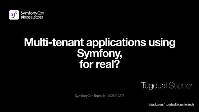 After a brief overview of the concept and the general challenges induced by multi-tenancy, we will review the most common ways teams are implementing multi-tenancy. We will then discover why PHP is a good candidate for multi-tenant software despite the general opinion. Finally, let's explore how one can leverage Symfony features to ease their job implementing and maintaining multi-tenant stacks.