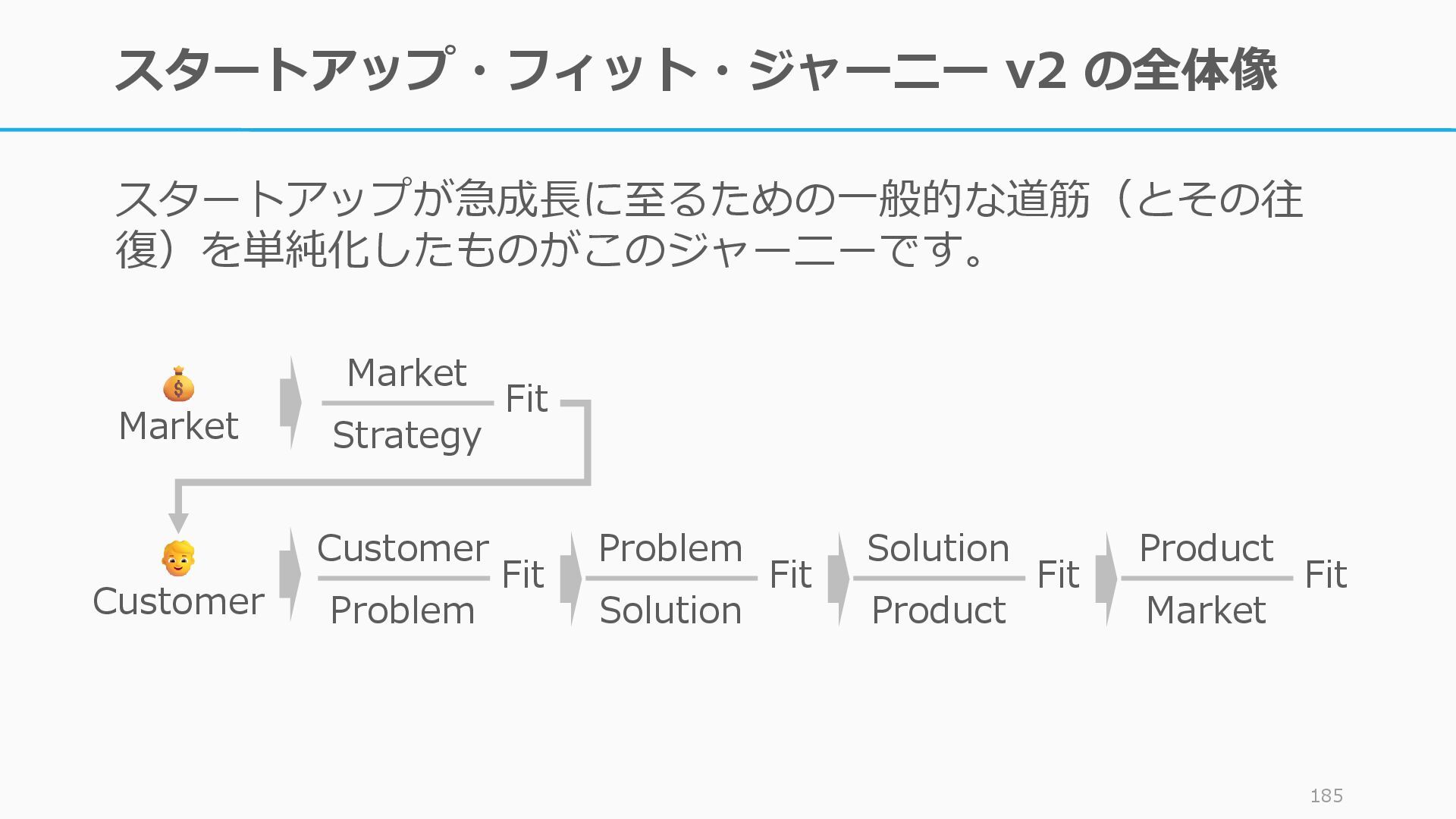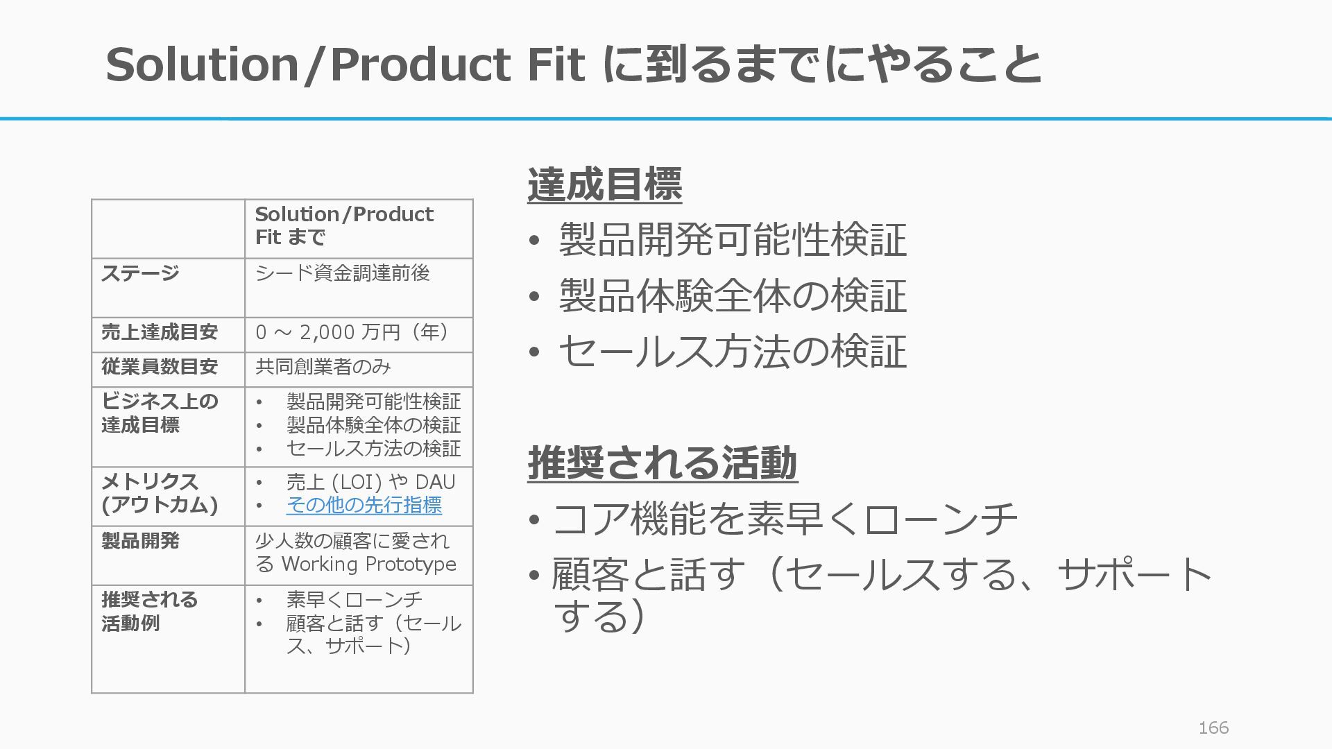 Fit Solution Product Fit Product Market Fit Market Market Strategy Fit 普通の起業の場合は市場等は考えず 「顧客起点」で問題ないことが多い 市場が小さくても課題解決 してお金が貰えていれば、 企業は生きていけるので通 常の起業ではこちらが重要