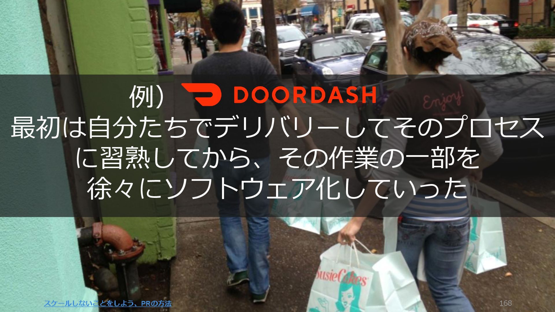 license. http://www.paulgraham.com/bio.html 159 「今すぐこれを欲しがるのは 誰だ?」 「誰も聞いたことのない二人 だけのスタートアップが作っ たクソみたいなバージョン 1 でさえ使うほどに、これを欲 しているのは誰だ?」 もし答えられないのなら、そ れはおそらく悪いアイデアだ。 Paul Graham “How to Get Startup Ideas” 参考 Masa Kakinoki さん訳『スタートアップのアイデア を得る方法』