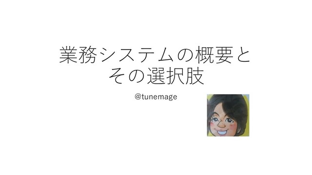 きたいです。 • 業務システムをお仕事にされている皆さんから、ご意見やご批判いた だけると幸いです