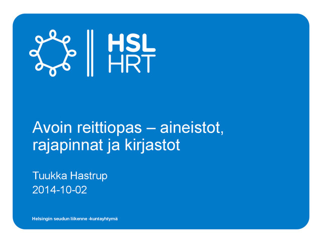 Avoin data, avoimet rajapinnat, avoin lähdekoodi • Yhteistyössä HSL ja Liikenneviraston matka.fi Ketterä hankinta, ketterä toteutusprojekti • Hyödynnetään LIJ:stä saatavat tosiaikatiedot Poikkeusinfo, ajoneuvojen sijainnit, pysäkkikohtaiset ennusteet • Palvelumuotoilu uudistaa konseptia Lähtökohdaksi käyttö puhelimella Tavoitteena yksi yhtenäinen sähköinen informaatiopalvelu
