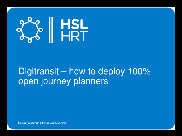 HTML5, React, Leaflet, Piwik, Sentry etc. − OpenTripPlanner 1.0 (contributed GraphQL API, airlines etc.) − Pelias (improvements for i18n, Finland l10n, QA tools) − OSM2VectorTiles (public transport improvements, fixes) − HSL map style based on OSM Bright − Docker deployment scripts • (HSL font and logo are not open.)