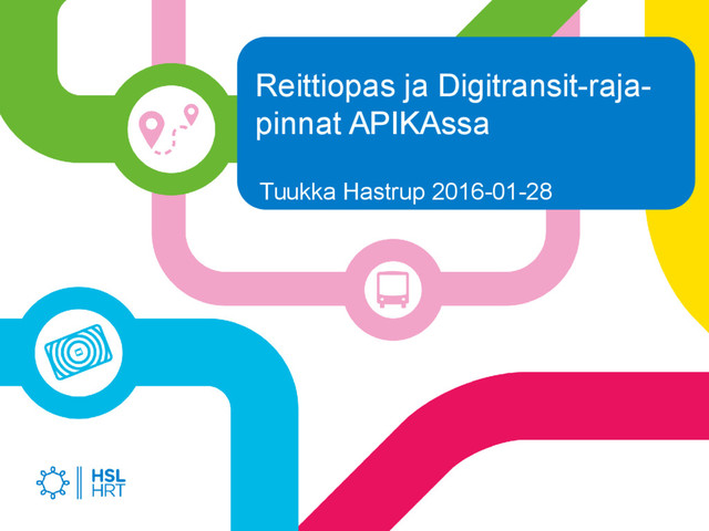 vanhat: Reittiopas, Poikkeusinfo (XML), Omat lähdöt (SOAP), HSL Live (CSV) • HSL:n kokeilulliset: navigator-server (Faye/Bayeux, SIRI JSON) • VR:n Junat kartalla (GeoRSS) • Liikenneviraston rata.digitraffic.fi (JSON, osin STOMP) • Muut kaupungit: Tampere, Oulu, Turku (3 SIRIä)