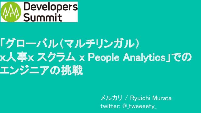 ◦ @_tweeeety_ • Career: ◦ いま: ▪ メルカリ.People & Culture > HR Data Management 所属 ◦ それまで ▪ メルカリ.Engineering Div < DeNA < CA Mobile < freelance < SIer ▪ ベースはBackend Engineer or Engineering Manager “だった” • Hobby, Favorite, その他: ◦ Workout, Swimming, Snowboarding, BMX (recent), Youtube, Watching martial arts (K1, RIZIN) ◦ Game (A long time ago): Some Titles that have become top class gamers in Japan = PuyoPuyo, TEKKEN, dragon collection 今日は このあたりの話し