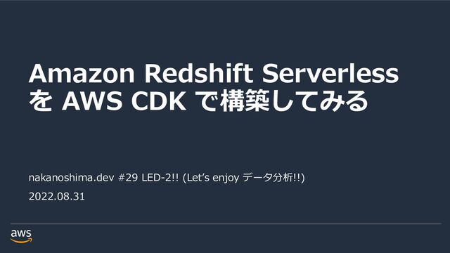 rights reserved. IAM Role Namespace // IAM Role/Policy for Redshift Serverless Namesapce const redshiftserverlessNamesapceRole = new iam.Role(this, 'RedshiftServerlessNamesapceRole', { assumedBy: new iam.CompositePrincipal( new iam.ServicePrincipal('sagemaker.amazonaws.com'), new iam.ServicePrincipal('redshift.amazonaws.com’), new iam.ServicePrincipal('redshift-serverless.amazonaws.com’), ), managedPolicies: [ iam.ManagedPolicy.fromAwsManagedPolicyName('AmazonRedshiftAllCommandsFullAccess’), ], }); https://docs.aws.amazon.com/ja_jp/redshift/latest/mgmt/default-iam-role.html