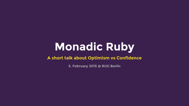 Monadic Ruby A short talk about Optimism vs Confidence 5.