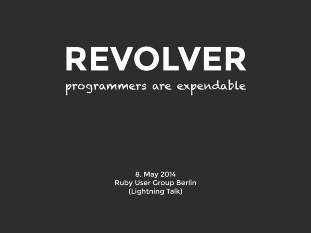 REVOLVER programmers are expendable 8. May 2014 Ruby User Group