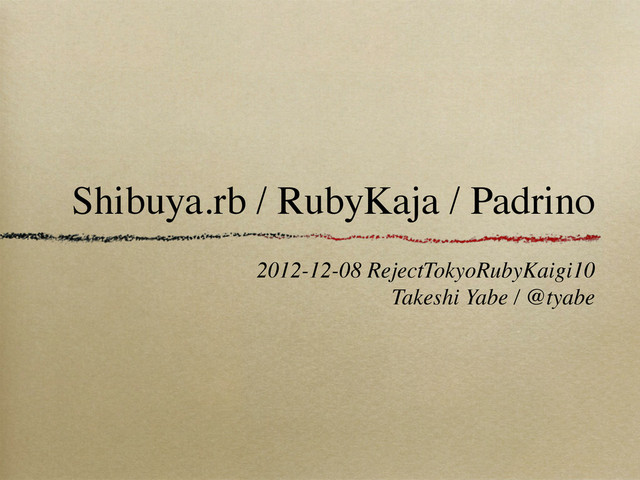 Shibuya.rb / RubyKaja / Padrino 2012-12-08 RejectTokyoRubyKaigi10 Takeshi Yabe /