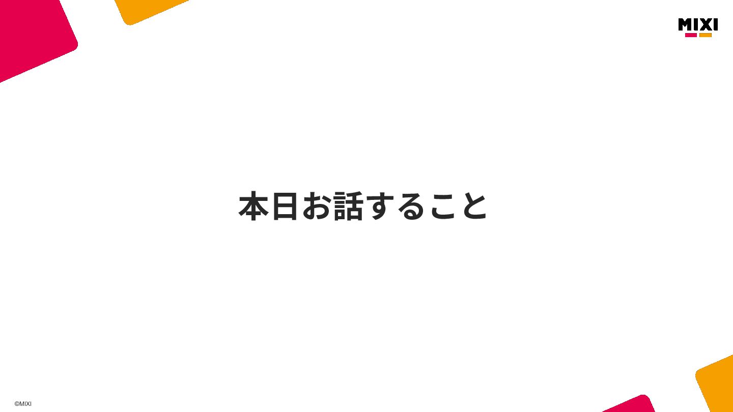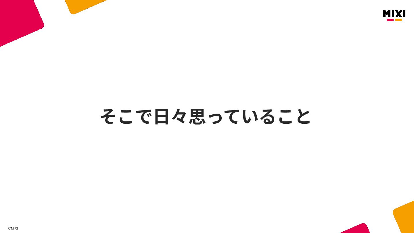 ©MIXI 豊かなコミュニケーションを広げ、 世界を幸せな驚きで包む。 PURPOSE 存在意義 「⼼もつながる」場と機会の創造。 MISSION やるべきこと ユーザーサプライズファースト MIXI