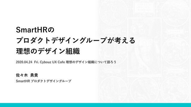 SmartHRの プロダクトデザイングループが考える 理想のデザイン組織 佐々木 勇貴 2020.04.24 Fri. Cybouz UX Cafe