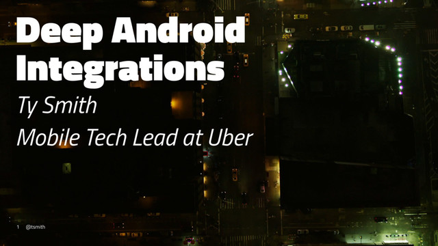 Designing an elegant interface for developers to communicate with your Android app is crucial for building a mobile platform. Ty has been building mobile-focused developer platforms at Evernote, Twitter, and now Uber. In this talk, he'll walk you through many of the best practices that he has accumulated and you’ll find out how to allow third party developers to seamlessly interact with your users’ local data to shortcut more expensive server operations.
