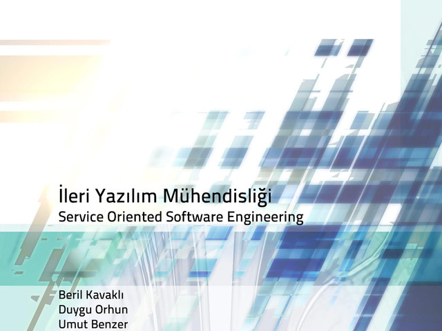 Bu sunumda Service Oriented Architecture (SOA) tarihçesi, özellikleri, SOA yaşam döngüsü, SOA'nın avantaj ve yararlarına, SOA ile ilgili standartlar'a (UDDI, WSDL, SOAP, WS-BPEL), Semantik Web Servisleri, Service Oriented Software Engineering gibi konulara yer verilmektedir.