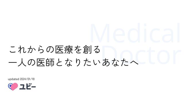 Medical Doctor updated 2024/01/18 これからの医療を創る 一人の医師となりたいあなたへ