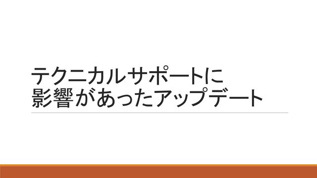 お話ししたいこと ・影響があったアップデート 1 ・影響があったアップデート 2 ・今後、影響がありそうなアップデート ・その他のアップデート ・早期解決のために