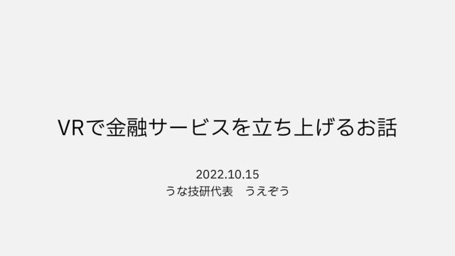 VRで⾦融サービスを⽴ち上げるお話 2022.10.15 うな技研代表 うえぞう