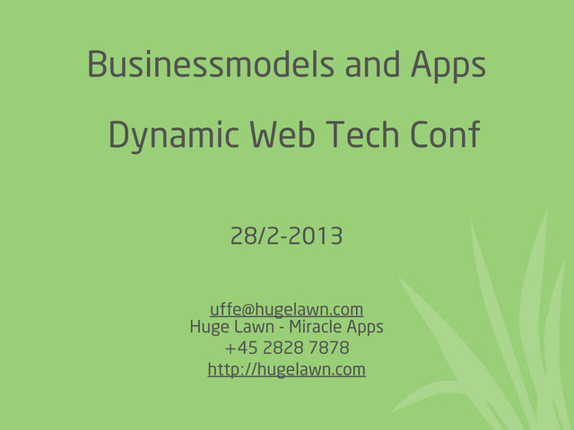 Through a number of years, Uffe Koch has worked with mobile platforms for companies such as Motorola. He also works with a long lists of large and minor companies and organisations and is in direct contact with apple. Uffe has worked with a long line of mobile application platforms on the market; Java/J2ME, Android, Symbian og UIQ, BREW, Windows Mobile, proprietære C, C++ and Linux/Java based platforms. Through his company Huge Lawn - Miracle Apps, Uffe has delivered more than 70 apps to iTunes AppStore and Google Play, and has many more in production or in the pipeline.
