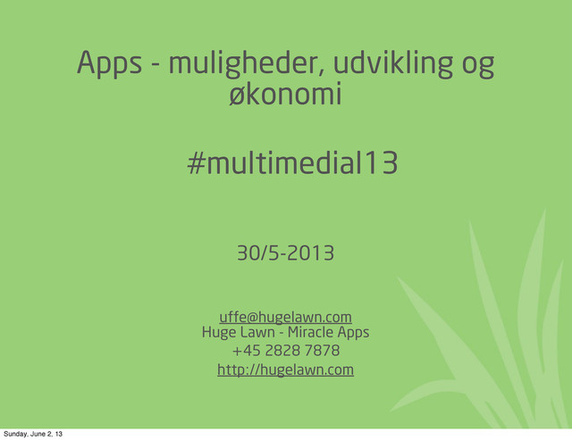 Lawn - Miracle Apps +45 2828 7878 http://hugelawn.com Sunday, June 2, 13