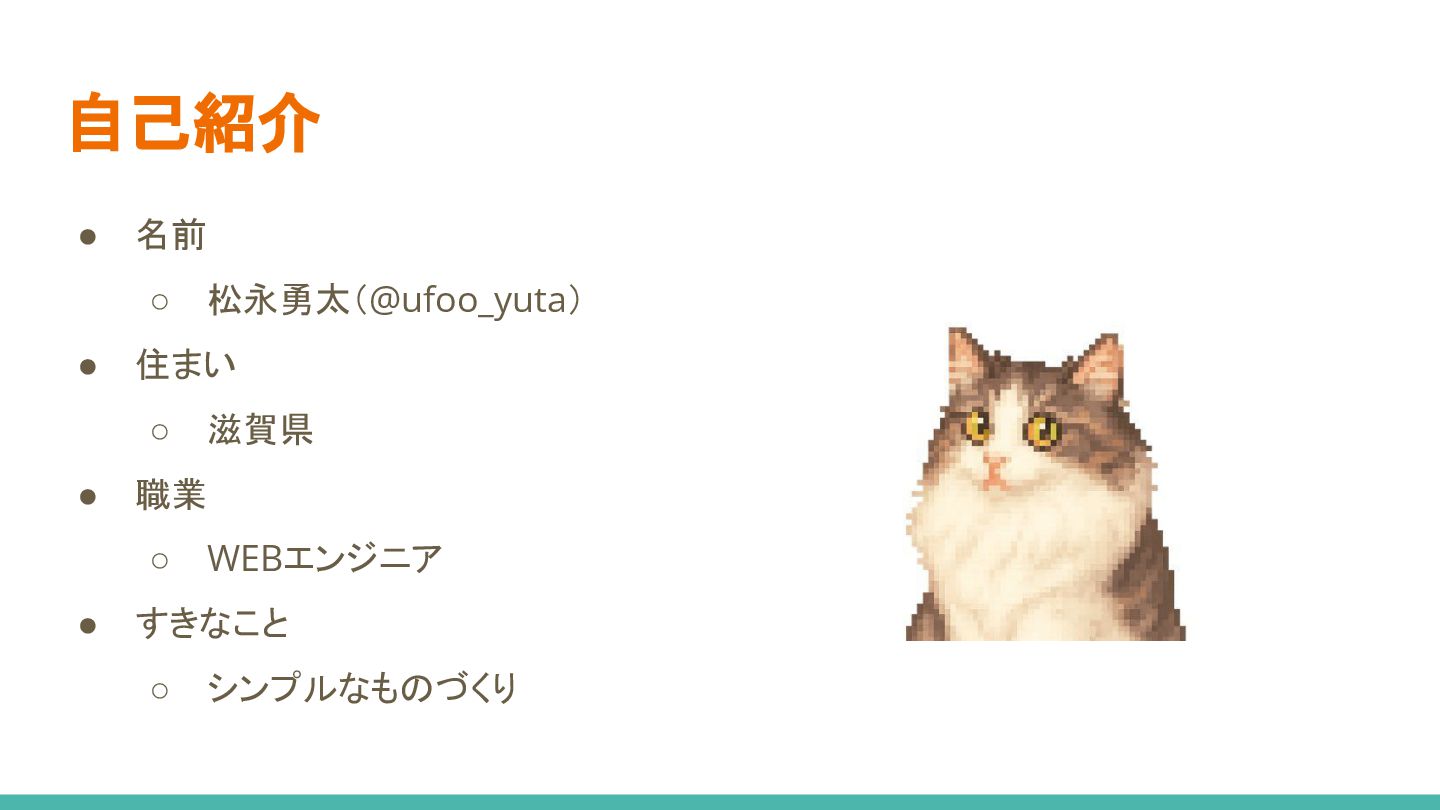 自己紹介 • 名前 ◦ 松永勇太(@ufoo_yuta) • 住まい ◦ 滋賀県 •