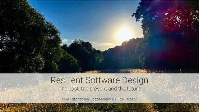 This slide deck is a bit of stocktaking and a look ahead regarding resilience in IT and resilience software design. It starts with the past - how resilience was treated inside and outside of IT.